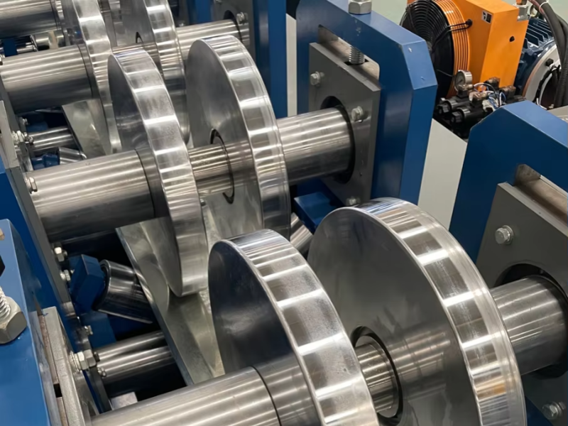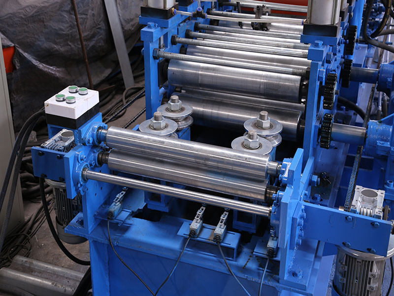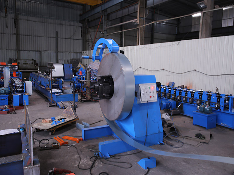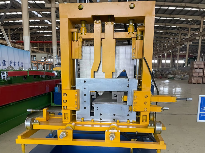 The automatic CZ exchange roll forming machine is a complete roll forming system designed to manufacture CZ purlins in a variety of specifications. This advanced equipment includes key components such as a passive loading frame, leveling device, automatic punching system, front shear device, main forming unit, continuous post-forming shear unit, hydraulic station, and a computerized control system.