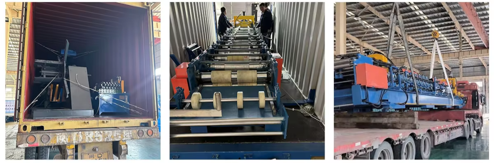 - For critical components, such as roll-forming roller sets, we employ metal frames for packaging. All parts are securely fastened within the container using steel ropes and locking devices to ensure safe long-distance transportation.